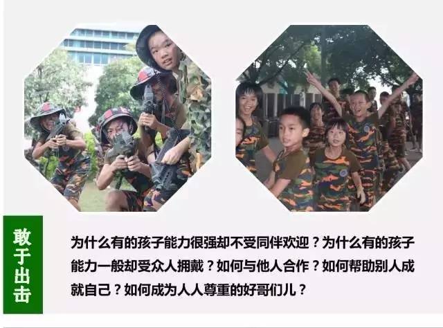 《國防生》夏令營,通過訓(xùn)練、拓展項目及特色課程,幫助青少年增強體質(zhì),提升獨立生活能力,拓展知識面,培養(yǎng)樂觀自信、勇于探索、創(chuàng)造性思維,提升人際溝通、團隊合作能力,促進青少年綜合素質(zhì)全面發(fā)展。